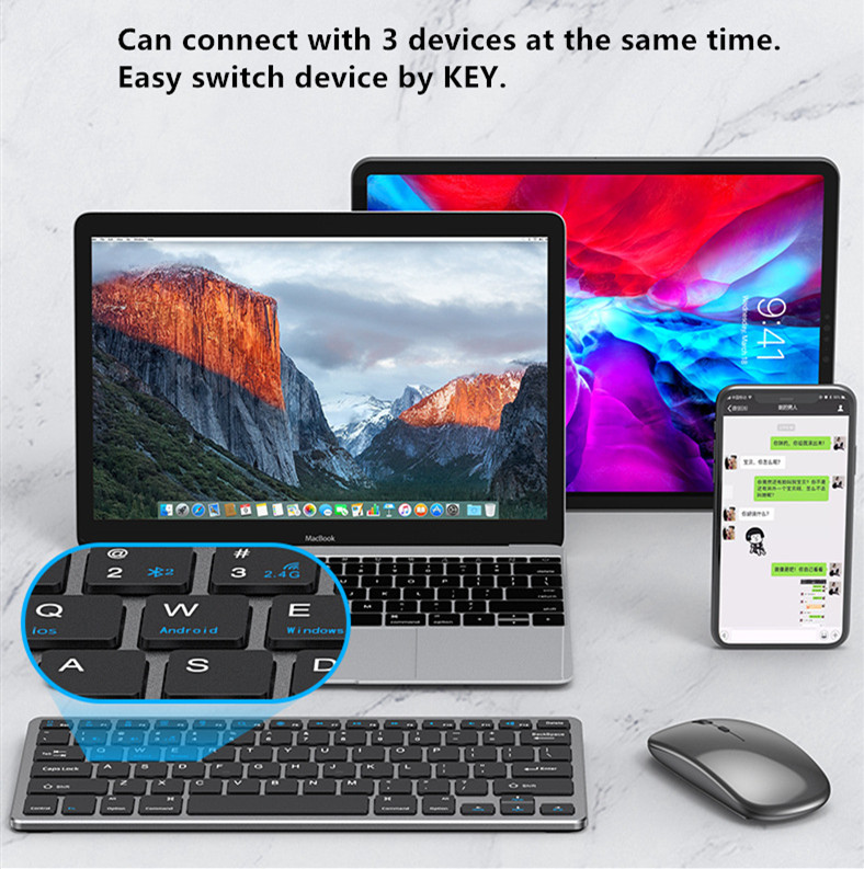 MOUSE FEATURES: Wireless mouse with precise tracking and comfortable ergonomic design complements the keyboard for optimal productivity.bluetooth+2.4G connection,MAX 2 device connect together at the same time.switch device by button.